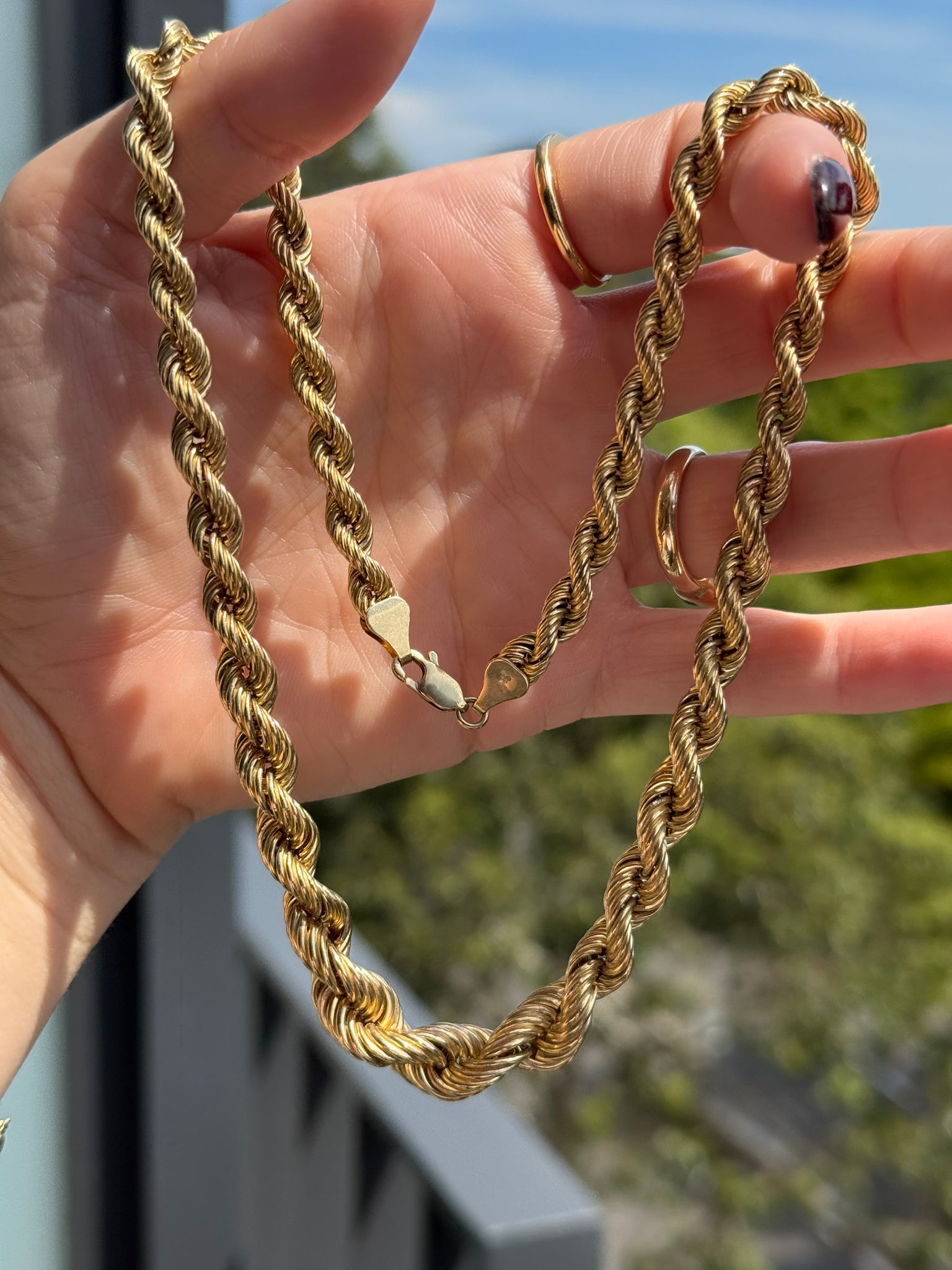 vintage chunky semi hollow graduated rope chain - normal vintage wear